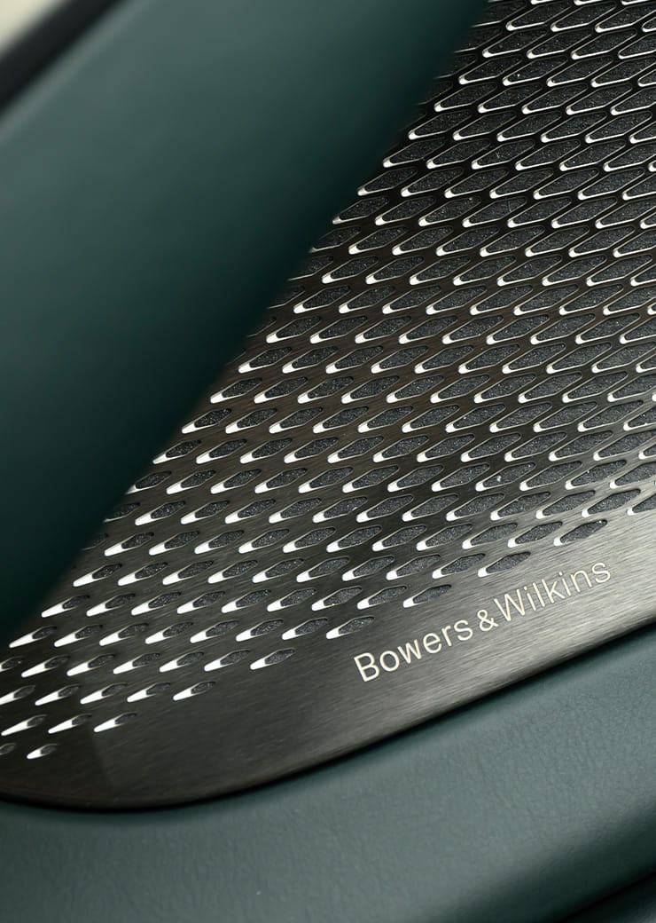 Najpotężniejszy system audio Aston Martina. Bespoke Surround Sound System, stworzony wyłącznie dla DBX707 we współpracy z Bowers & Wilkins, to symfonia technologii i emocji. 23 głośniki i 1600 W mocy, wspierane przez aluminiowe tweetery Double Dome oraz średniotonowe przetworniki Continuum™, tworzą doskonale zbalansowany, precyzyjny dźwięk. Kierunkowe głośniki wysokotonowe, jednostki w podsufitce i potężny subwoofer z portem gwarantują akustyczne doświadczenie o niezrównanej głębi — najbardziej dopracowane w historii marki.