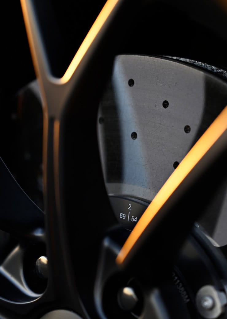Konstrukcja powiększonych, 21-calowych, ręcznie kutych felg aluminiowych została zaprojektowana z wykorzystaniem symulacji, by usunąć każdy zbędny gram – bez kompromisu w wytrzymałości ani w stylu. Indywidualnie dobrana mieszanka opon redukuje masę i zwiększa trwałość, oferując lepszą przyczepność i większe wyczucie granicy trakcji.